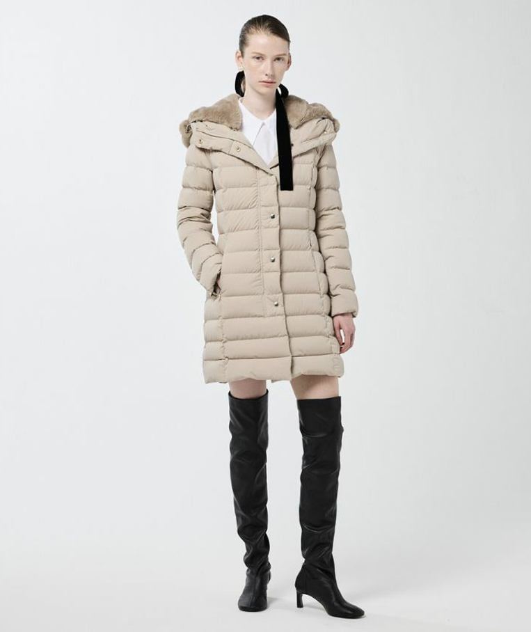着丈の長いロングダウンはすっきりとしたIラインが出やすいシルエット。
