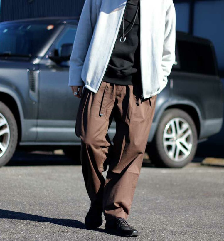テーパードがしっかり効いているのでワイドパンツが初めての方でも取り入れやすい一本です。