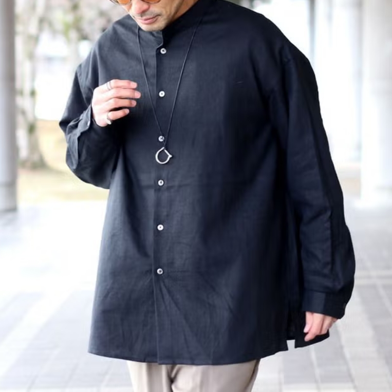 上質なリネン特有の“とろみ”と着こむほどに馴染む風合いが40代男性の肌に驚くほどマッチします。