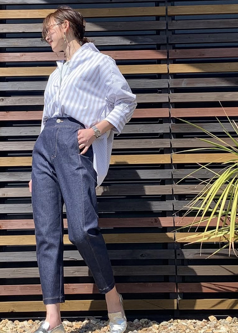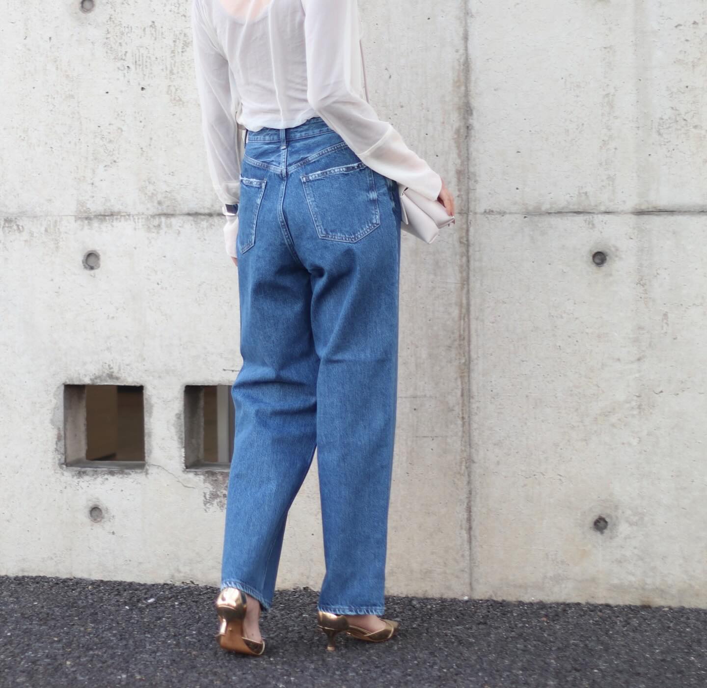普段は丈が足りるようにとサイズを大きくするとウエストやヒップがブカブカになりがちですが、このデニムは後姿のフィット感もちょうど良いんです!