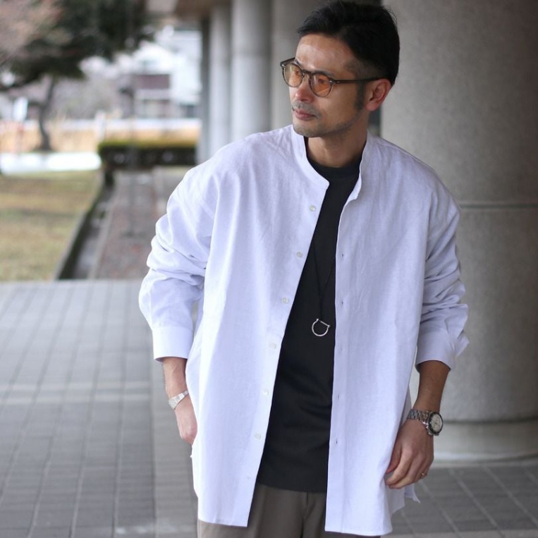 キレイ目のスラックスやレザーサンダルと合わせれば、1枚でも大人らしい品のある着こなしに仕上がります。