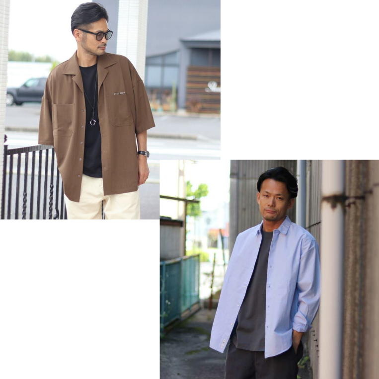 淡い色のシャツの中に暗めのTシャツを合わせても、またはシャツと同系色の明るめTシャツでそろえても、こなれ感がアップ。