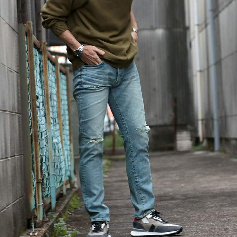 やりすぎない控えめなダメージと立体感のある表情が、大人のスタイリングに自然となじみ、年代を問わず長く愛され続ける理由です。