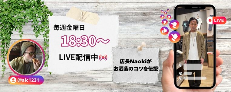 毎週配信しているインスタLIVEでは、オシャレに見せるコーディネートのコツや新作のご紹介しています。