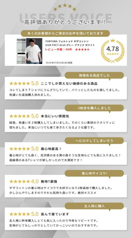 【厳選】よれないTシャツはコレ!FORTUNA HOMME ギザコットンが優れる理由