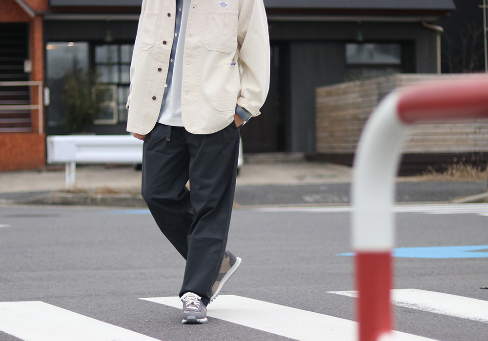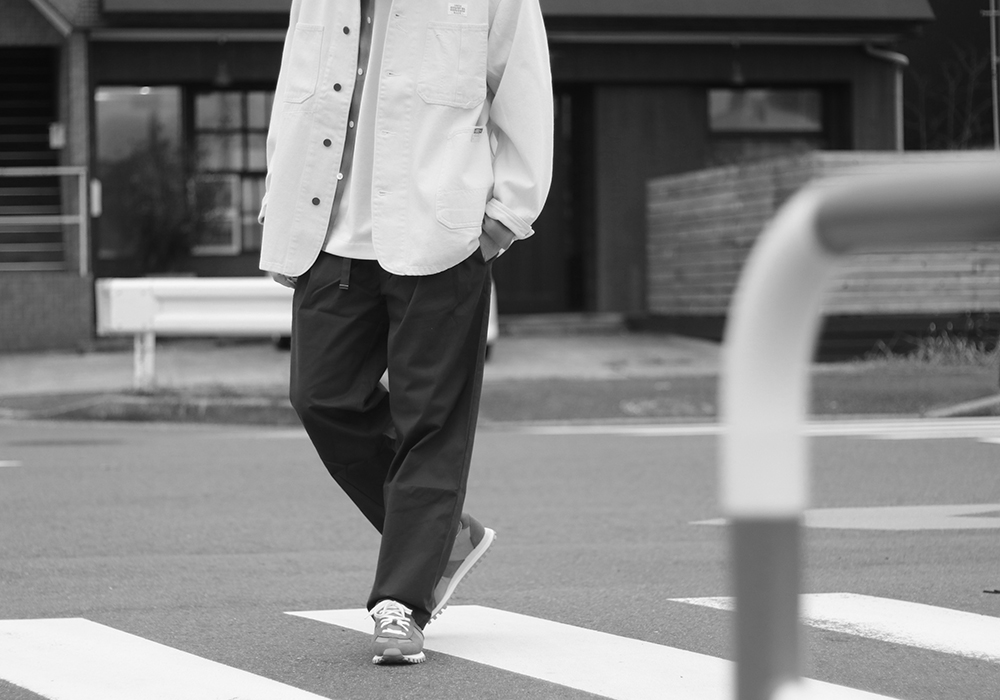 ハリがありながらも柔らかさのある生地を使用。ワイドシルエットでも重たく見えず、最初から快適な穿き心地を実感できます。