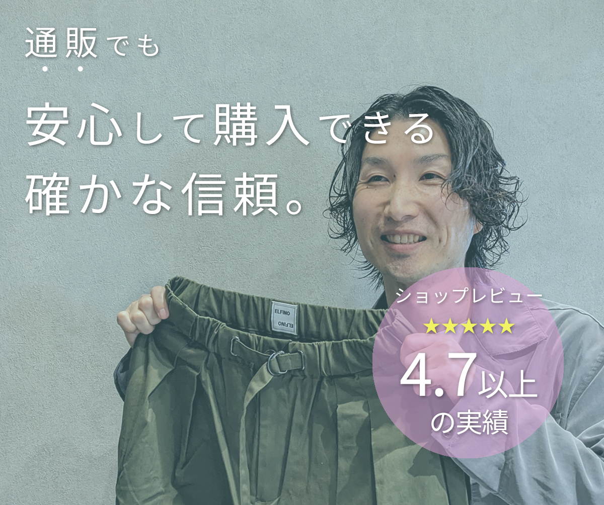 「サイズが不安…」「わからない事がある…」を解決します。 実店舗で接客しているベテランスタッフが、サイズ感や着こなしのご相談に丁寧にお答えします。 ネットでも実店舗と同じように、安心してお買い物いただけるようサポートいたします。