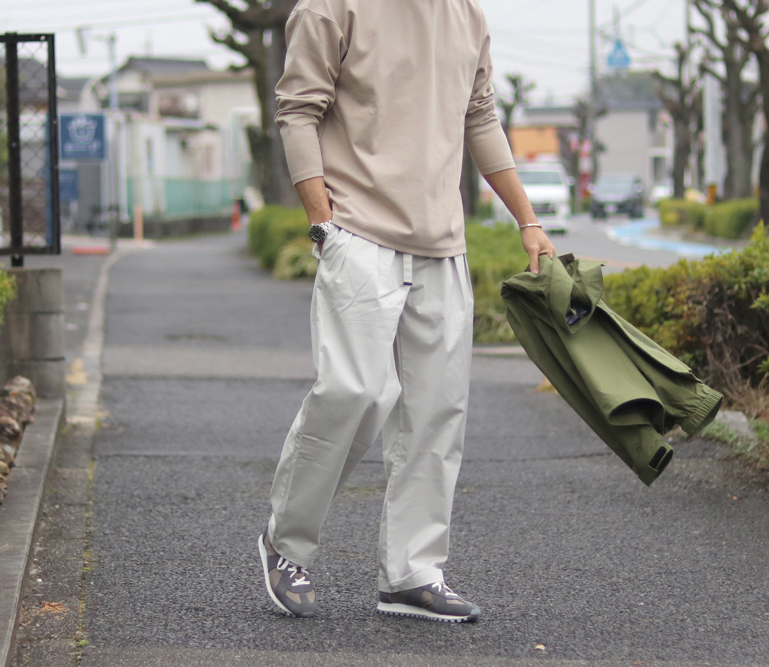 細く見せるためのパンツではなく、無理に流行を追うパンツでもありませんが、穿くと自然にまとまります。